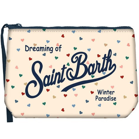Questa pochette MC2 SAINT BARTH in tessuto scuba si distingue per la stampa all-over di cuoricini multicolore, perfetta per aggiungere un tocco vivace e raffinato al tuo look. Il passante in gros-grain consente una presa sicura al polso, unendo funzionalità ed eleganza. Il logo stampato garantisce autenticità e stile riconoscibile. Con dimensioni compatte di 21 x 15,5 x 7 cm, è ideale per contenere gli essentials con discrezione e praticità.