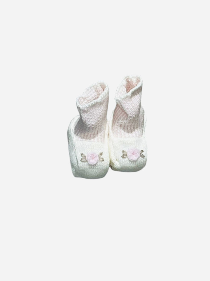 Queste babbucce da neonata, realizzate in morbida e calda maglia, garantiscono il massimo comfort e calore delicato per i primi mesi di vita. Il collo a smerlo aggiunge un tocco di eleganza, mentre il dettaglio con applicazioni di rose conferisce un aspetto raffinato e delicato. Prodotte da MARLU', sono ideali anche per accompagnare la piccola durante l’uscita clinica, unendo praticità e stile in un unico accessorio.