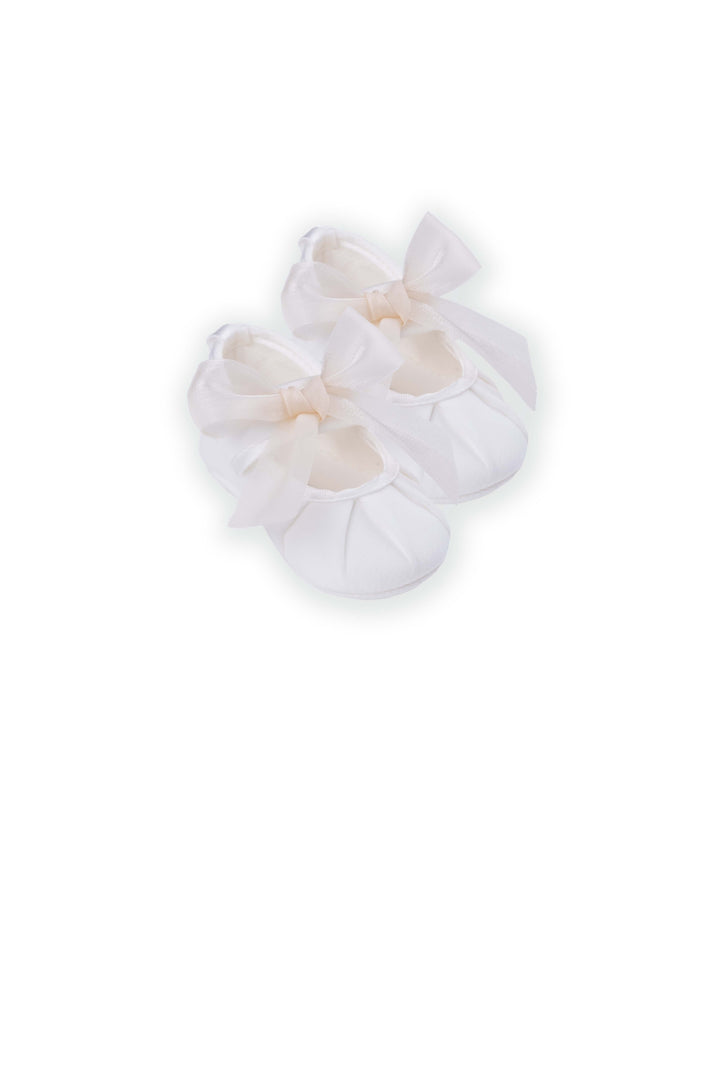 La ballerina SISSI per neonato, firmata MARLU', è realizzata in tessuto pregiato e si chiude delicatamente sul collo del piede con un fiocco in organza di seta. Ideale per completare con eleganza abiti importanti, offre comfort e uno stile raffinato fin dai primi passi.