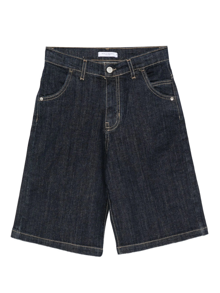 Bermuda in denim di qualità superiore firmata PAOLO PECORA, pensata per il guardaroba estivo del bambino. Il capo si distingue per il design essenziale e raffinato, arricchito da cuciture a contrasto che ne evidenziano la costruzione accurata. La silhouette pulita e versatile lo rende perfetto per abbinamenti casual e più ricercati, garantendo comfort e stile in ogni occasione.