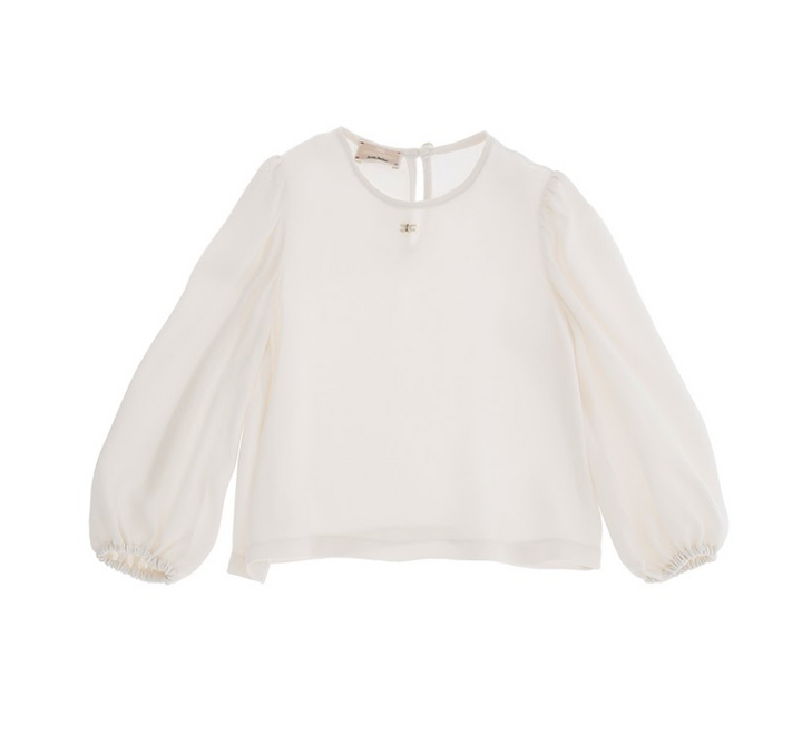 Questa camicia da neonata, realizzata in leggero georgette di seta semi-trasparente, unisce delicatezza e eleganza. La manica lunga con orlo elastico garantisce comfort e libertà di movimento, mentre la raffinata placchetta doppia C zirconata al centro aggiunge un tocco distintivo di lusso. Prodotta da Elisabetta Franchi, è perfetta per vestire con classe i momenti più speciali.