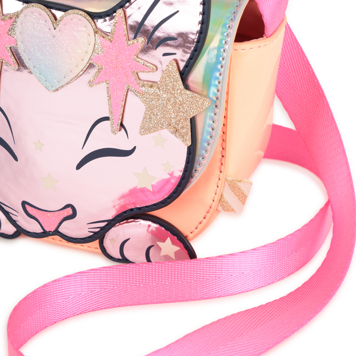 Lasciati conquistare dalla borsa KITTY di BILLIEBLUSH, realizzata in tessuto rivestito lucido con eleganti riflessi. L'illustrazione "Cat" in glitter dona carattere e luce, rendendo ogni outfit unico. La chiusura magnetica combina praticità e stile, completando questo accessorio raffinato e contemporaneo, ideale per chi cerca un tocco distintivo senza rinunciare a funzionalità.