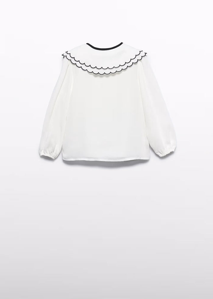 Questa camicia da bambina in morbido chiffon, firmata ABEL&LULA, combina eleganza e comfort. Il design sobrio è valorizzato dalla manica lunga a sbuffo e dal distintivo doppio collo alla Peter Pan con orlo a merlo, che aggiungono un tocco raffinato. Perfetta da abbinare agli Shorts LUSTRINI per un look delicato e curato in ogni dettaglio.