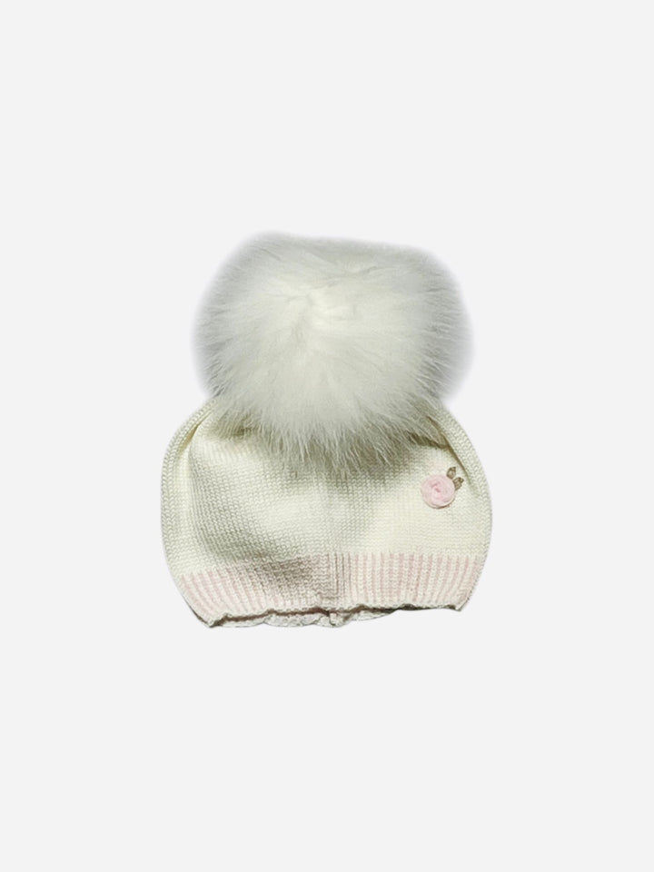 Questo cappello per neonata, realizzato interamente in maglia, unisce praticità e raffinatezza. Il delicato dettaglio della rosa in maglia aggiunge un tocco di dolcezza, mentre il pompon in volpe conferisce un elegante particolare e morbidezza al capo. Prodotto dall'azienda italiana MARLU', garantisce qualità e cura artigianale, ideale per proteggere e avvolgere con stile la testa delle più piccole.