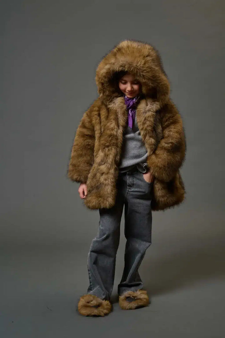 Il cappotto CAROLA in eco pelliccia unisce eleganza e comfort per la bambina moderna. Con maniche lunghe, cappuccio avvolgente e soffice fodera in cotone, garantisce calore ideale senza rinunciare allo stile raffinato. Perfetto per le giornate più fredde, offre una vestibilità impeccabile e una morbidezza delicata sulla pelle.
