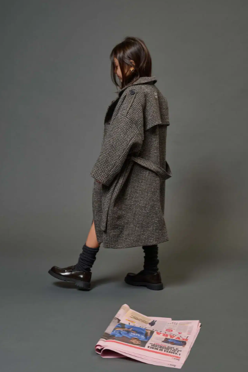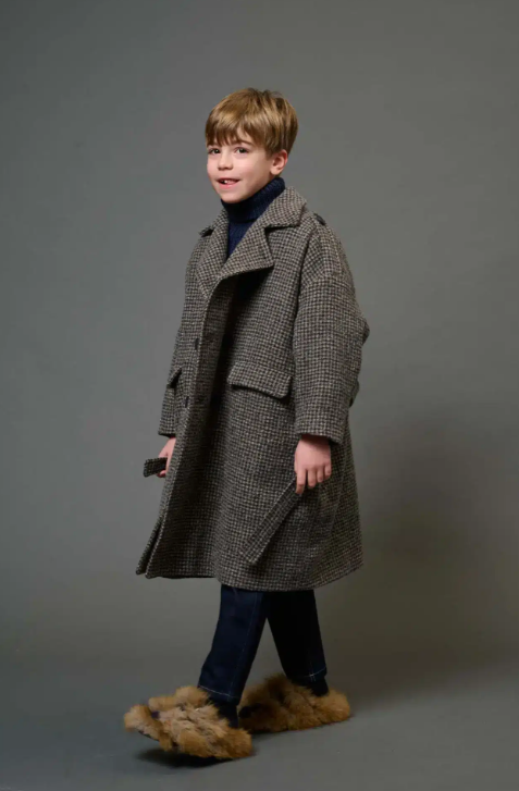 Il cappotto trench Imanda per bambina e bambino combina un design contemporaneo con materiali di alta qualità. Dotato di chiusura doppiopetto, tasche a pattina e cintura rimovibile, offre eleganza e praticità in ogni occasione, assicurando comfort e stile raffinato. 100% Lana vergine e cotone.