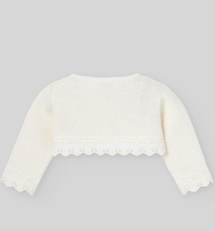 Il cardigan PAZ RODRIGUEZ per neonata è realizzato in morbida maglia di riso, arricchito da un delicato dettaglio a catenella e da una rifinitura ondulata che ne esaltano l’eleganza. Il modello presenta un collo rotondo e una chiusura frontale con due raffinati bottoni in madreperla, garantendo comodità e stile. Ideale per cerimonie e occasioni speciali, questo capo unisce design sofisticato e comfort per la pelle delicata dei più piccoli.