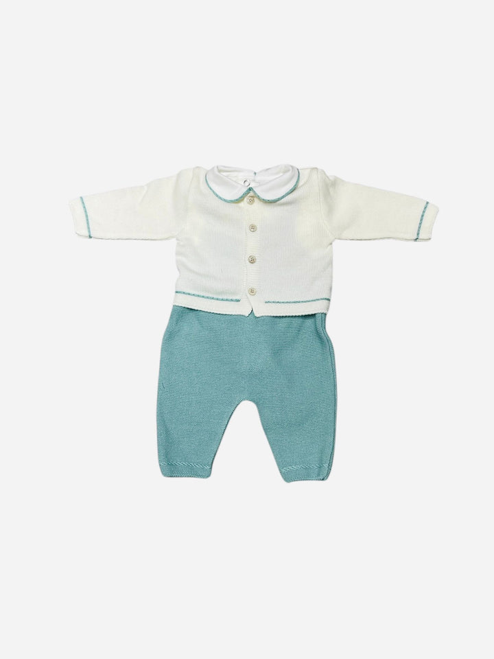 Il coordinato ALTEO per neonato unisce comfort e stile grazie alla sua maglia morbida e calda. Include una maglia in cotone con classico colletto alla Peter Pan, una salopette in maglia arricchita da delicati ricami e un cardigan coordinato, ideale per mantenere il piccolo al caldo con eleganza. Prodotto da MARLU’, questo set combina qualità dei materiali e cura artigianale per un abbigliamento funzionale e raffinato.