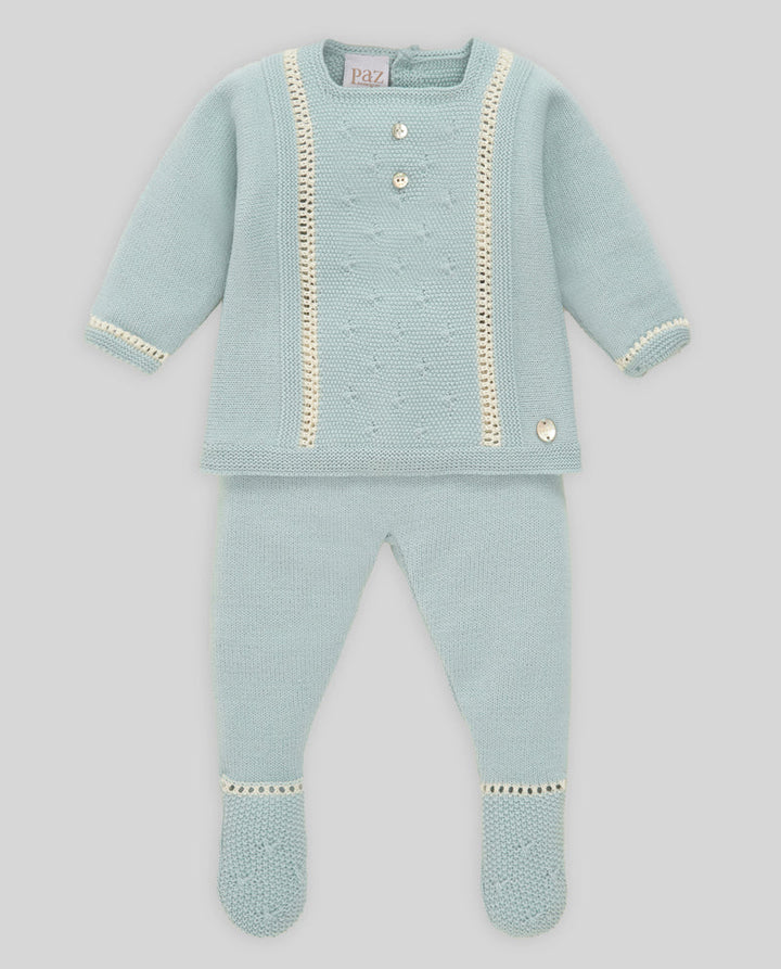 Il coordinato SEMILLA di Paz Rodriguez è confezionato interamente in lana 100% di alta qualità, garantendo morbidezza e traspirabilità ideali per la pelle sensibile del neonato. Questo set assicura comfort e protezione naturale, perfetto per mantenere il piccolo caldo e avvolto in un tessuto delicato e resistente. Una scelta esperta per chi cerca sicurezza e materiali pregiati senza compromessi.