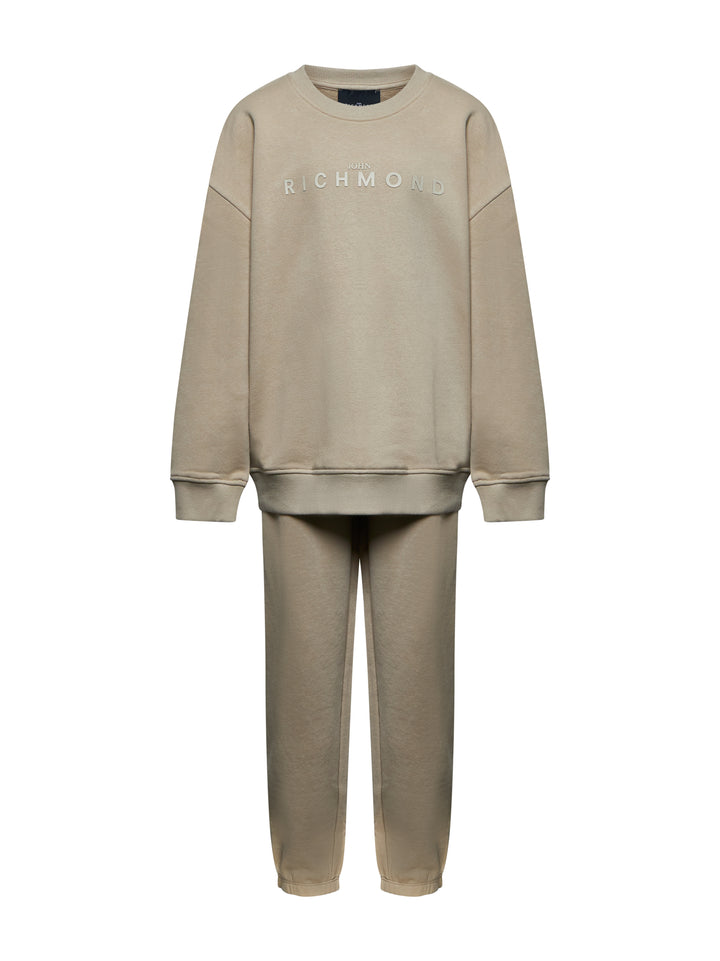 Il coordinato SIBRI per bambino, realizzato in morbida felpa garzata, garantisce comfort e versatilità in ogni stagione. La felpa presenta un elegante girocollo a coste, con polsi e orlo rifiniti nello stesso stile, e il logo in silicone al centro aggiunge un tocco distintivo. Il pantalone è dotato di elastico in vita e coulisse regolabile, assicurando una vestibilità perfetta e personalizzata. Prodotto da JOHN RICHMOND, unisce qualità e design per un outfit pratico e raffinato.