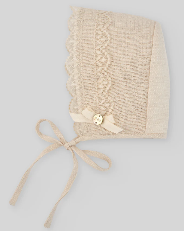 La cuffia ALEGRIA di Paz Rodriguez, realizzata in tessuto jacquard con volant tono su tono, unisce eleganza e raffinatezza. I nastri in gros grain da annodare permettono una vestibilità personalizzata, mentre il distintivo laterale in madreperla aggiunge un tocco sofisticato. Ideale per occasioni speciali, questo accessorio esalta ogni outfit con classe e delicatezza