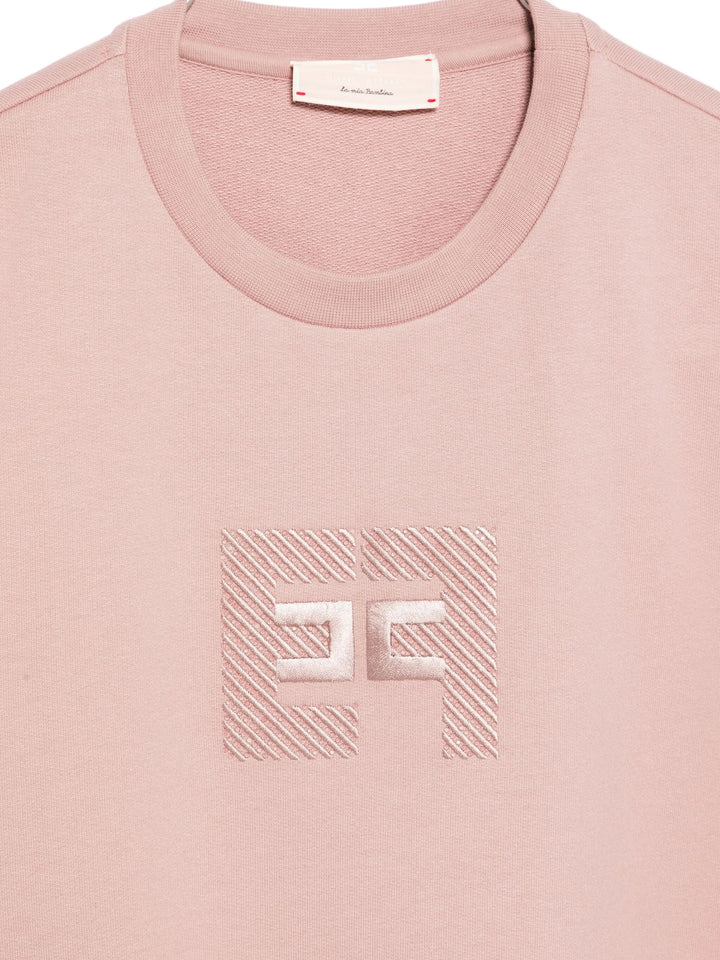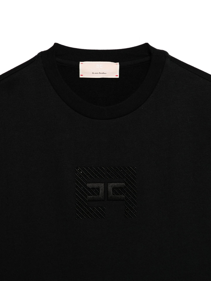 Questa felpa da bambina in felpa garzata combina eleganza e comfort in un design asimmetrico raffinato. Il logo ELISABETTA FRANCHI, ricamato con cura e arricchito da strass termoadesivi, dona un dettaglio prezioso e sofisticato, perfetto per uno stile distintivo e ricercato.