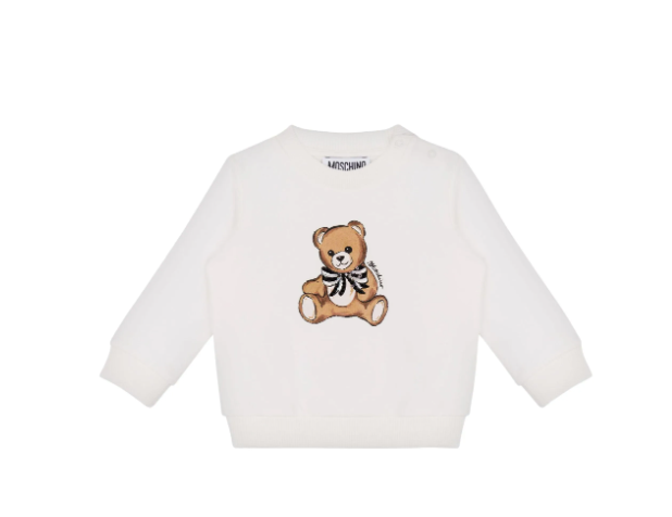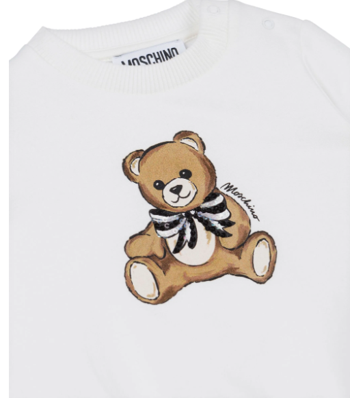 Questa felpa Moschino per neonata unisce eleganza e comfort con un raffinato design Teddy Bear ricamato. Il girocollo e le maniche lunghe garantiscono una vestibilità avvolgente, mentre la chiusura con bottone automatico facilita la vestizione. Perfetta per accompagnare i momenti di crescita con stile delicato e sofisticato.