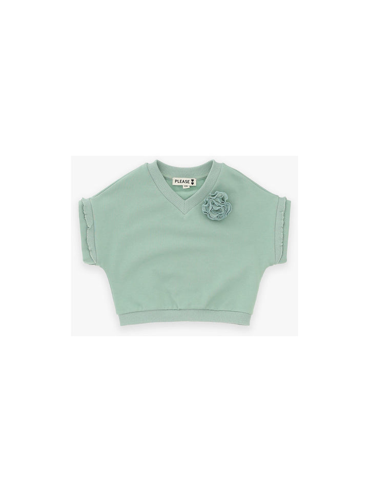 Felpa in cotone morbido e confortevole, ideale per le piccole dai primi mesi fino ai 6 anni. Caratterizzata da uno scollo a V elegante e da un'applicazione floreale ricamata sul petto, che aggiunge un tocco di dolcezza e femminilità. Il tessuto garantisce libertà di movimento e traspirabilità, perfetto per le giornate di transizione. Un capo versatile che si abbina facilmente con pantaloni, leggings o gonne, diventando un elemento essenziale del guardaroba della tua bambina.