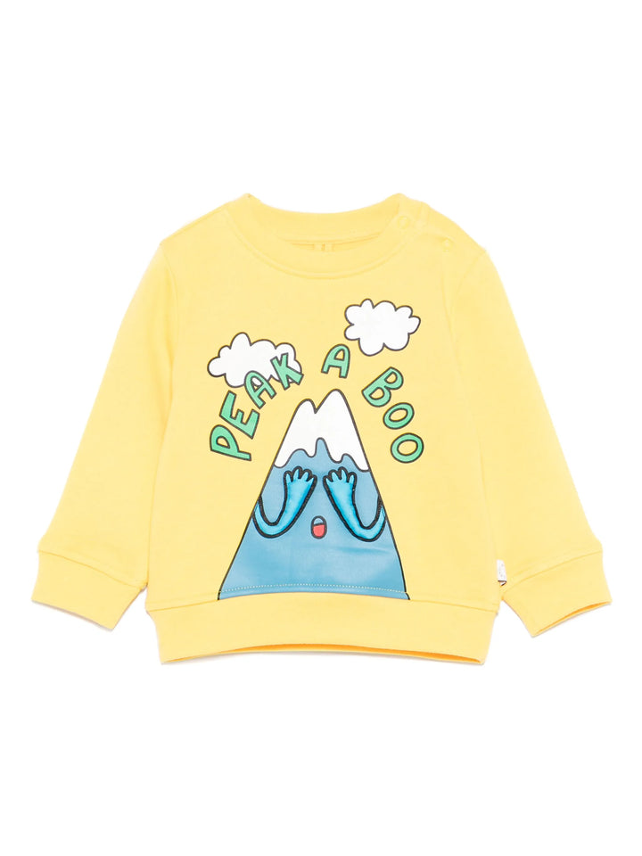 Questa felpa da neonato di Stella McCartney, realizzata in cotone sostenibile, unisce comfort e stile con eleganza. Il design presenta un raffinato girocollo a coste, che si ripete sui polsi e sull’orlo, mentre la delicata stampa “Peak A Boo” aggiunge un tocco giocoso ma discreto. Ideale per garantire morbidezza senza rinunciare a un’estetica curata e moderna.