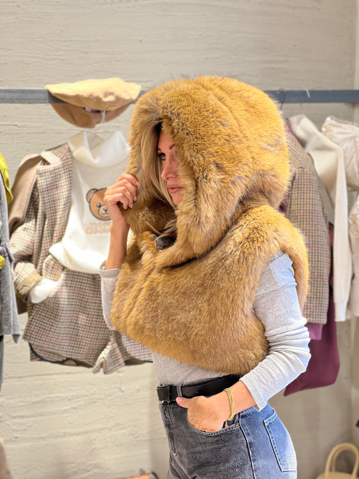 Questo gilet corto in ecopelliccia unisce eleganza e funzionalità, ideale per arricchire i tuoi outfit autunnali e invernali con un tocco di calore aggiuntivo. Realizzato con materiali sostenibili, rappresenta una scelta consapevole e raffinata per chi desidera mantenere uno stile sofisticato senza rinunciare al rispetto per l'ambiente. Perfetto da indossare sopra camicie o maglioni, questo capo versatile è un alleato prezioso per le stagioni fredde.