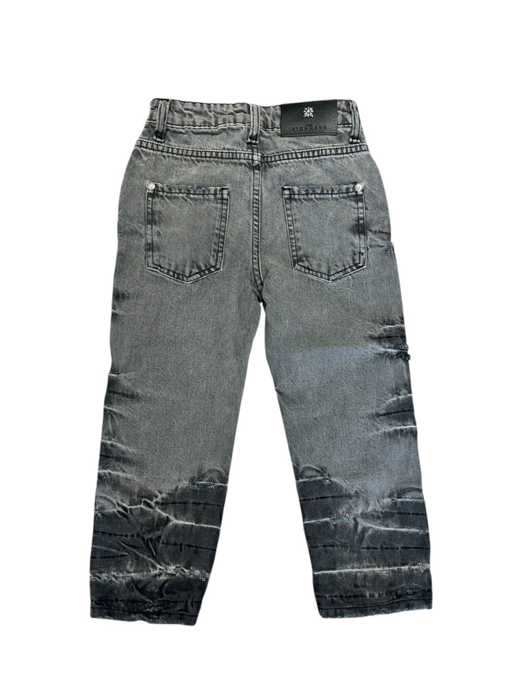 Jeans da bambino in denim elasticizzato con vestibilità skinny che offre comfort e libertà di movimento. Il dettaglio di tagli laser aggiunge un tocco moderno e di stile unico, perfetto per i piccoli trendsetter. Un capo firmato JOHN RICHMOND, sinonimo di qualità e design contemporaneo.