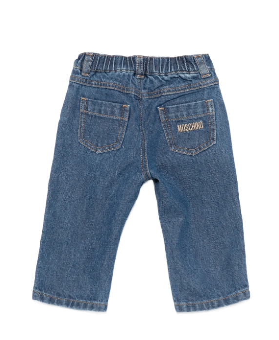 I Jeans PATCH TEDDY di Moschino per neonato combinano eleganza e comfort con un design a cinque tasche, vita elasticizzata e chiusura a bottoni per una vestibilità perfetta. Il taglio dritto assicura una linea sobria e raffinata, impreziosita dal dettaglio distintivo del patch orsetto sulla tasca e dal logo ricamato, simbolo di qualità e stile esclusivo.