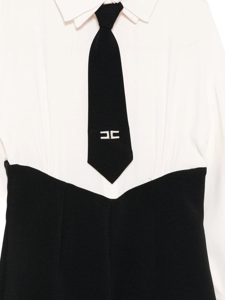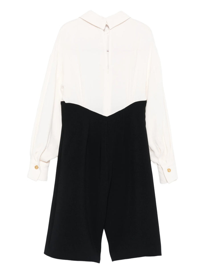 Questo jumpsuit da bambina, realizzato in pregiato tessuto crepe, combina eleganza e comodità. La camicia a manica lunga è definita da un raffinato doppio colletto e da una cravatta incorporata, impreziosita dal logo doppia C di Elisabetta Franchi ricamato in filo lamé. Il pantalone wide leg completa il capo con un tocco di sofisticata modernità, ideale per occasioni speciali con stile e classe.