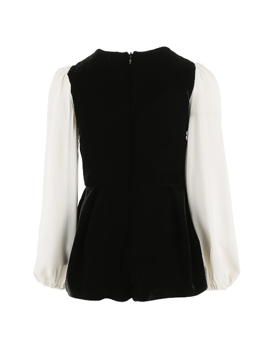 Questa jumpsuit da bambina unisce eleganza e comfort, ideale per occasioni speciali. La camicia in crepe si distingue per il collo quadrato e le maniche a sbuffo, mentre la scamiciata pantaloncino in velluto morbido dona un tocco raffinato. Firmata ELISABETTA FRANCHI, è perfetta per vestire le più piccole con stile sofisticato e delicato.