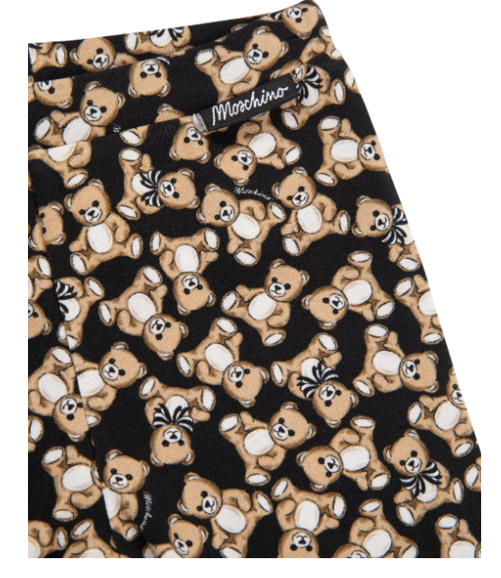 Le leggings TEDDY BEAR di Moschino per neonata uniscono stile e comfort grazie alla stampa grafica all-over, alla vita elasticizzata e alla lunghezza alla caviglia. La finitura morbida assicura una delicata sensazione sulla pelle, ideale per le più piccole con un tocco di eleganza contemporanea.