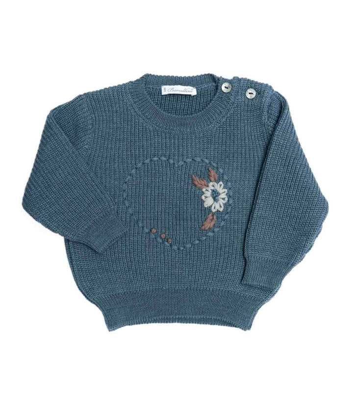 Il maglione da neonata Maglia BOCCIOLO 2.0, realizzato in morbida e calda maglia lavorata ai ferri, garantisce comfort e protezione nelle giornate più fredde. Il girocollo a coste, abbinato ai polsini e all'orlo, assicura una vestibilità ottimale. Il raffinato dettaglio ricamato a mano, con cuore e fiore, aggiunge un tocco artigianale e delicato. Un capo di qualità firmato BARCELLLINO, ideale per accompagnare i primi mesi di vita con stile e cura.
