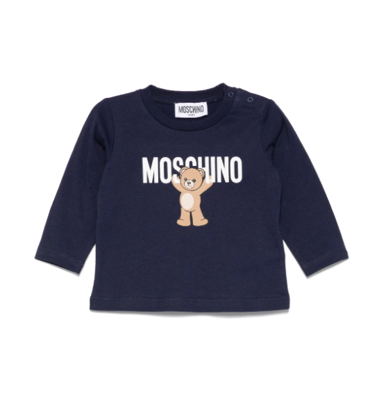 La maglia HUG TEDDY di Moschino, realizzata in morbido cotone, combina eleganza e comfort per il neonato. Il design a girocollo con maniche lunghe garantisce una vestibilità delicata, mentre la stampa con orsetto e il logo aggiungono un tocco di charme esclusivo, perfetto per i primi giorni con stile raffinato.