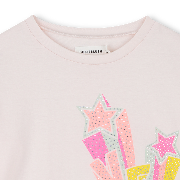 Questa maglia STARS LOVE in jersey di cotone unisce comodità e design di qualità. Le maniche lunghe e lo scollo rotondo garantiscono una vestibilità piacevole, mentre l’illustrazione frontale arricchita da borchie discreta aggiunge un tocco di personalità e carattere. Perfetta per un outfit casual che non rinuncia a uno stile contemporaneo e distintivo.