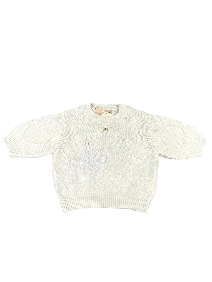 Il maglioncino crop ROMBO di Elisabetta Franchi per bambina, realizzato in Italia con materiali di alta qualità, offre una lavorazione tricot raffinata e un design girocollo elegante. Il dettaglio del logo in rilievo aggiunge un tocco distintivo, garantendo stile e comfort per ogni occasione.