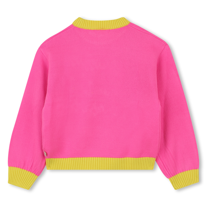 Questo maglione PRETTY di BILLIEBLUSH, realizzato a maglia fine, unisce eleganza e delicatezza per un look quotidiano raffinato. L'illustrazione frontale, arricchita da fili fantasia e cuori con paillettes, dona luminosità e originalità. I dettagli a contrasto nella scollatura e nel fondo completano con stile il design, rendendo questo capo morbido, moderno e ricco di personalità.