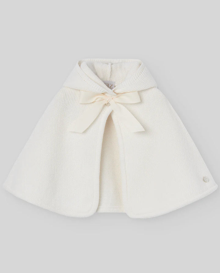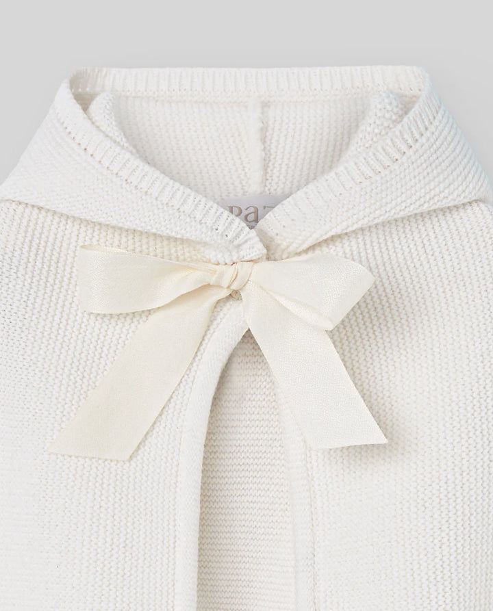 Questa mantella da bambina in lana, firmata PAZ RODRIGUEZ, unisce eleganza e comfort. Il cappuccio con fiocchetto in gros grain regolabile al collo offre una vestibilità personalizzata, rendendola ideale per cerimonie e occasioni speciali. Un capo sofisticato pensato per garantire calore e stile in ogni momento.