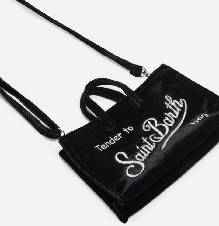 La Phone Bag Velvet di MC2 Saint Barth è una mini borsa porta telefono realizzata in velluto nero di alta qualità. Il design compatto e sofisticato garantisce praticità e stile, proteggendo il dispositivo con eleganza. Perfetta per chi cerca un accessorio funzionale senza rinunciare a un tocco di classe.