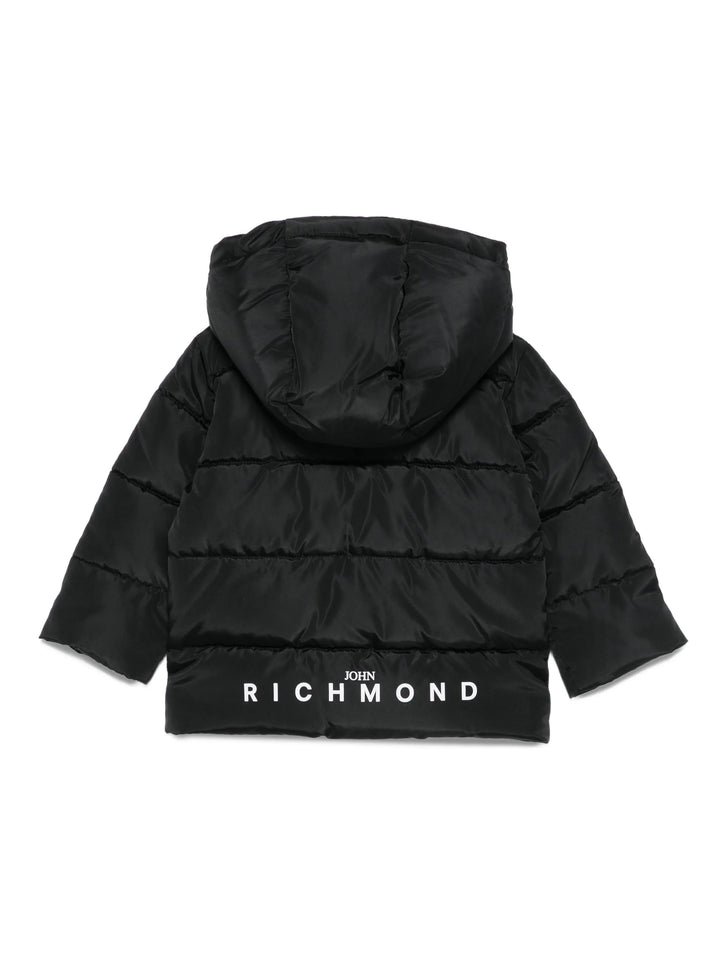 Questo piumino da bambino in nylon combina praticità e stile. Il design trapuntato assicura una migliore distribuzione del calore, mentre il cappuccio protegge efficacemente dal vento e dalle intemperie. La chiusura doppia con zip e bottoni a pressione logati garantisce una vestibilità sicura e facile da regolare. Il dettaglio del logo JOHN RICHMOND stampato all'orlo sul retro aggiunge un tocco distintivo e raffinato, ideale per un look contemporaneo ed elegante.