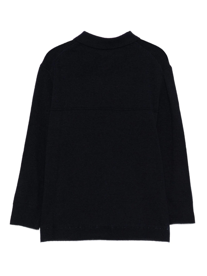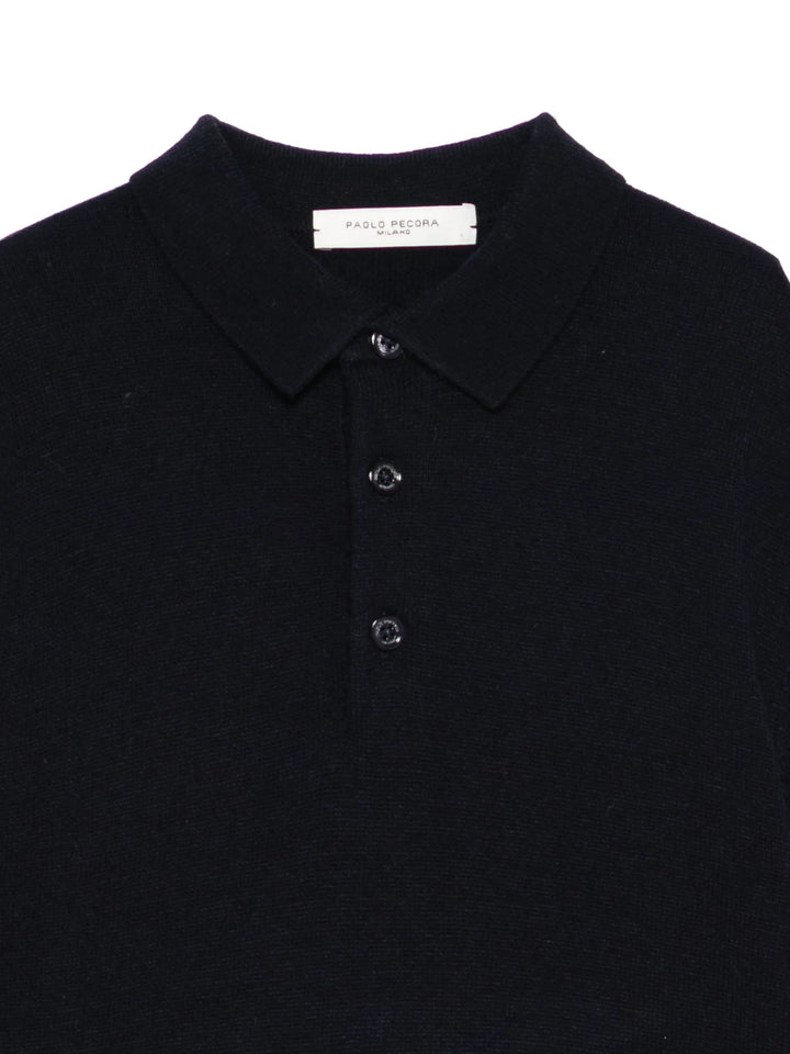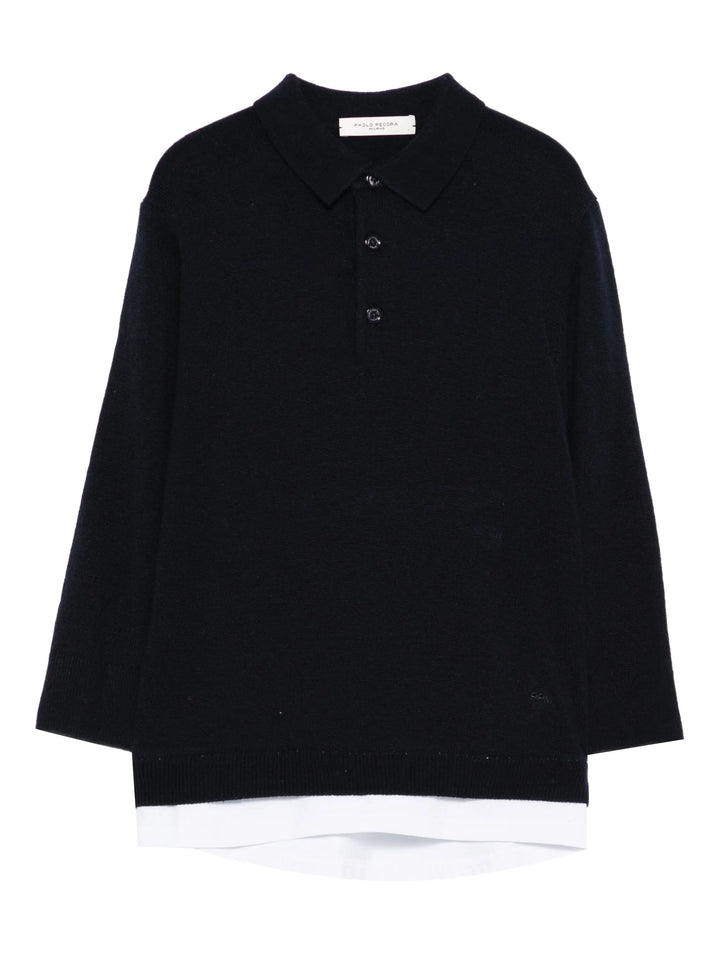 Questa polo da bambino, realizzata in morbida e calda maglia, garantisce comfort e calore durante le giornate più fresche. Caratterizzata da un collo polo classico e maniche lunghe con polsini a coste, presenta un originale dettaglio di t-shirt che sporge dall'orlo, aggiungendo un tocco di stile contemporaneo. Prodotta da PAOLO PECORA, unisce qualità artigianale a un design curato, ideale per vestire con eleganza e praticità.