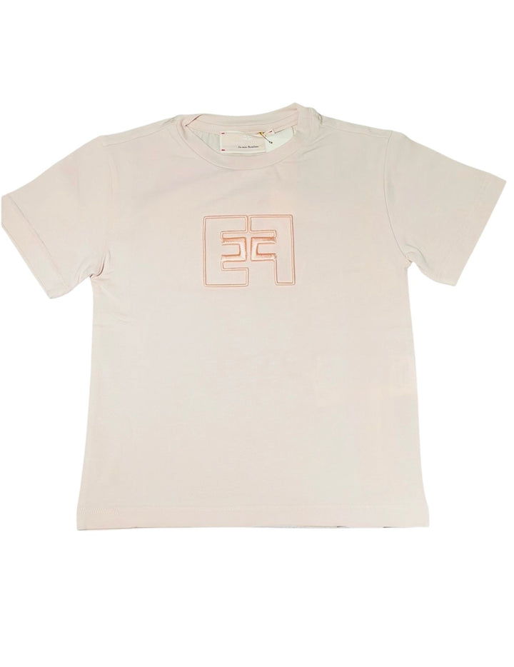 Questa T-shirt da bambina è realizzata in cotone puro, garantendo morbidezza e traspirabilità per il massimo comfort. Il modello a manica corta presenta un design essenziale, arricchito dal ricamo centrale del logo ELISABETTA FRANCHI, che conferisce un tocco di eleganza discreta e distintiva. Ideale per un look semplice ma raffinato.
