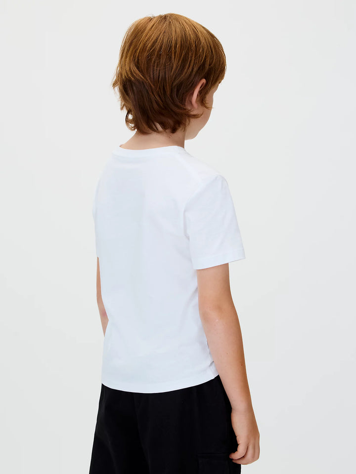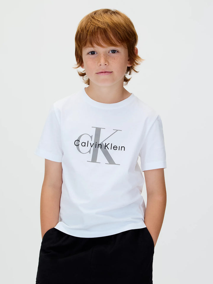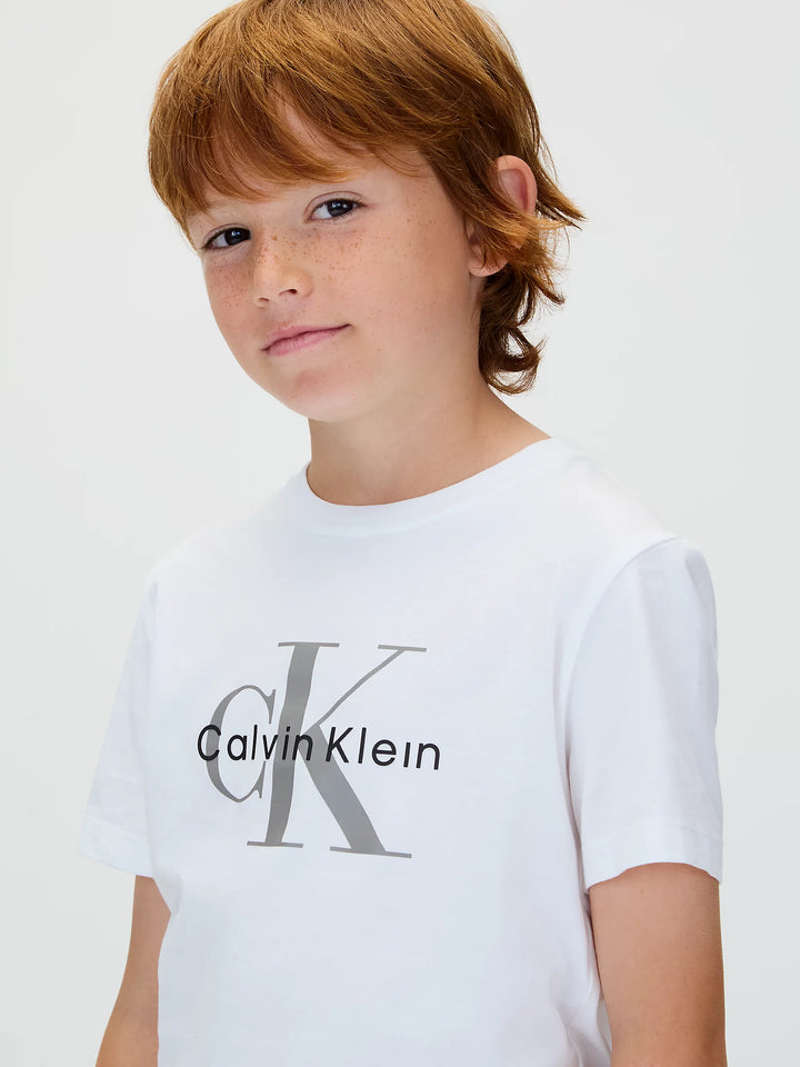 Questa t-shirt unisex per bambini, realizzata in cotone morbido, garantisce comfort e traspirabilità ideali per la quotidianità. Il design a manica corta è perfetto per la stagione calda, mentre il monogramma CALVIN KLEIN aggiunge un tocco distintivo di stile e qualità riconosciuta. Una scelta versatile e raffinata per il guardaroba dei più piccoli.