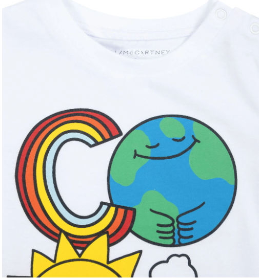 Questa T-shirt da neonato in cotone organico offre comfort naturale e una vestibilità slim elegante. Il design è arricchito da una stampa con lo slogan "COOL" accompagnato da simboli multicolori, aggiungendo un tocco vivace e raffinato al capo. Realizzata da Stella McCartney, garantisce qualità e stile senza compromessi per i più piccoli.