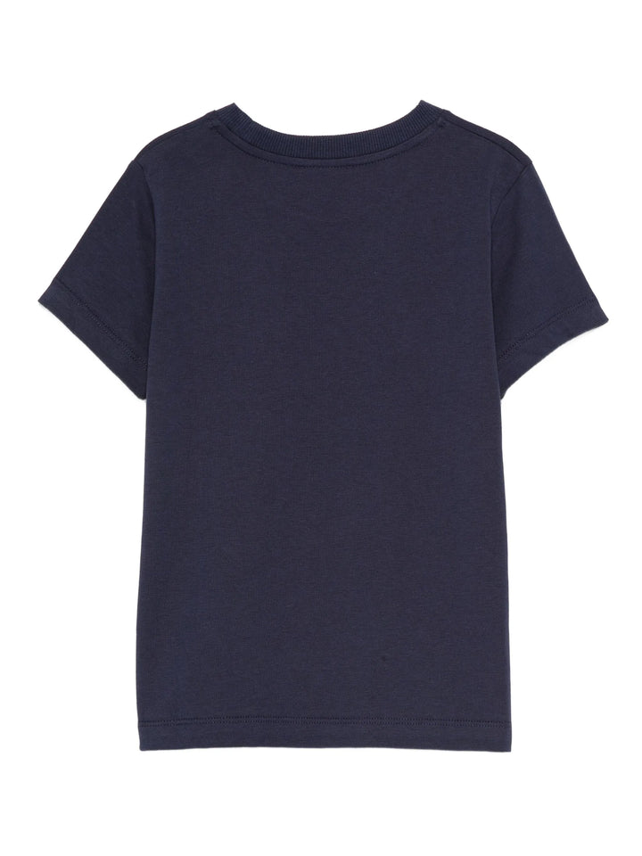 Questa T-shirt da bambino in cotone offre un design sobrio ed elegante, arricchito dal collo a coste che garantisce comfort e vestibilità. Il tocco distintivo è il piccolo patch con l’iconico orsetto MOSCHINO applicato sul petto, che dona un dettaglio raffinato senza rinunciare alla semplicità. Perfetta per i più piccoli con stile e personalità.