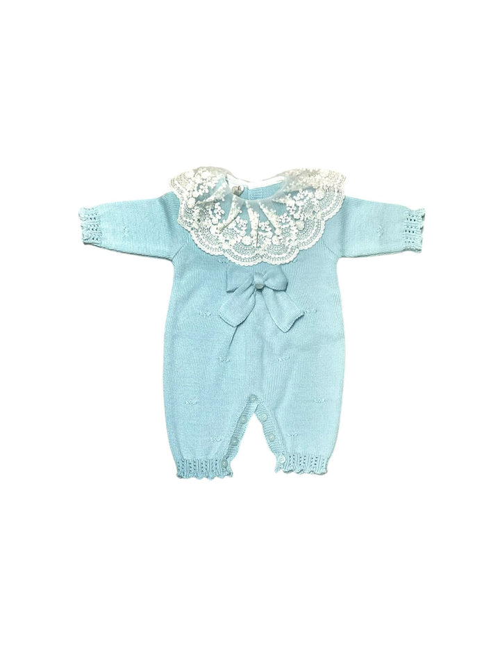 La tutina ACQUAMARINA, realizzata in morbida e calda maglia, è ideale per l’uscita dalla clinica grazie al suo comfort e alla qualità dei materiali. Il grande collo in pizzo con orlo a smerlo aggiunge un tocco di eleganza, mentre il fiocco centrale impreziosisce il design, rendendola perfetta per accogliere la neonata con stile e delicatezza. Prodotta da MARLU’, garantisce cura sartoriale e attenzione ai dettagli.