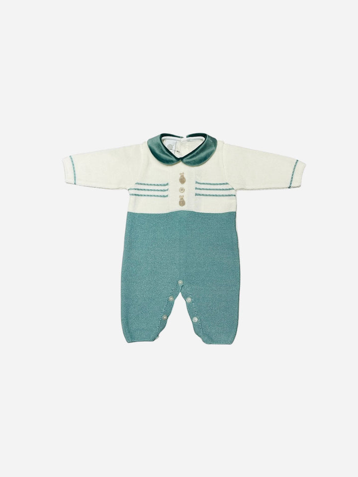 Questa tutina da neonato, realizzata in morbida e calda maglia, assicura comfort e protezione durante i primi mesi. Il collo Peter Pan in velluto dona un’eleganza classica, mentre i delicati e dolci ricami sul davanti aggiungono un dettaglio raffinato. L’abbottonatura sul retro e lungo il cavallo facilita il cambio, rendendo il capo pratico per i genitori. Prodotta da MARLU', combina qualità artigianale e design pensato per la sensibilità della pelle del neonato.