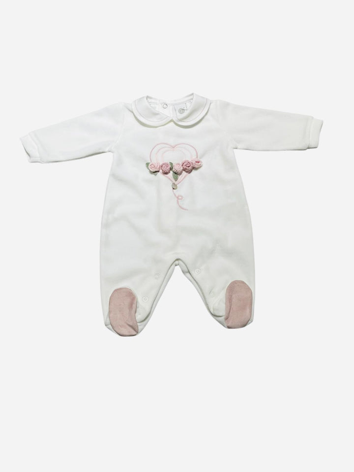 La tutina ANASTACIA, realizzata in ciniglia morbida e calda, assicura comfort e calore per la neonata. Il colletto in cotone stile Peter Pan presenta al centro un delicato ricamo di cuori, impreziosito da applicazioni di fiori in maglia, che conferiscono un’eleganza discreta. Prodotta da MARLU', questa tutina è ideale per l’uscita clinica, combinando qualità, stile e praticità in un unico capo.