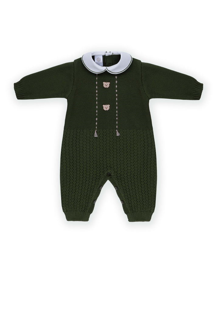 Questa tutina da neonato, realizzata con lana 100% italiana, garantisce morbidezza e calore delicato per la pelle sensibile dei più piccoli. Il colletto in cotone modello Peter Pan unisce comfort e stile, mentre la lavorazione in tricot arricchita da dettagli di piccoli orsetti aggiunge un tocco raffinato e giocoso. Prodotto di qualità firmato MARLU', pensato per avvolgere il neonato con eleganza e praticità.