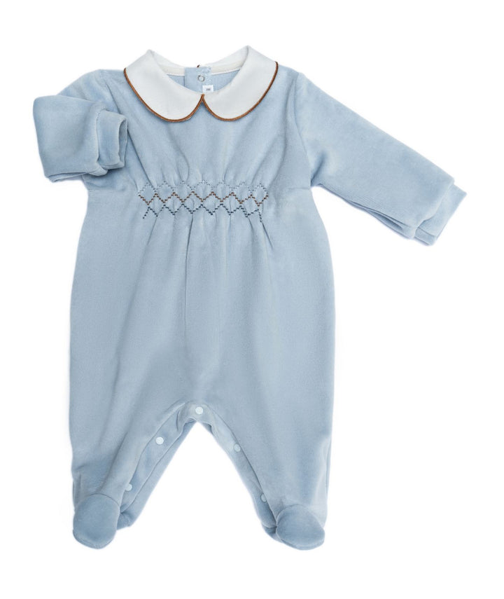 Realizzata in soffice e caldo ciniglia, la tutina CERES assicura comfort e calore al neonato. Il colletto Peter Pan con ricamo a punto smock dona un tocco elegante e raffinato, ideale anche per l’uscita clinica. Prodotta da BARCELLINO, è perfetta per vestire il tuo piccolo con delicatezza e cura sin dai primi giorni.