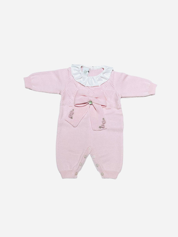 La tutina Maglia SORAYA, realizzata in morbida e calda maglia, garantisce comfort e calore alla tua neonata. Prodotta dall’azienda MARLU’, si distingue per il colletto a petalo rifinito con orlo a smerlo in cotone, che offre delicatezza a contatto con la pelle. Il corpetto intrecciato e il fiocco in maglia in vita aggiungono un tocco elegante e ricercato, ideale per proteggere e vestire con stile nei primi mesi di vita.