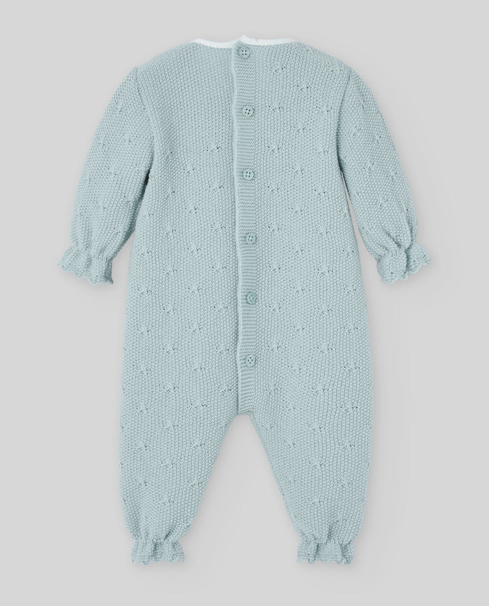 La tutina SEMILLA di PAZ RODRIGUEZ è realizzata con materiali di alta qualità e una raffinata lavorazione tricot, garantendo comfort e morbidezza per la pelle delicata della neonata. Il dettaglio floreale aggiunge un tocco di eleganza e dolcezza, ideale per offrire stile senza rinunciare alla praticità. Un capo pensato per unire cura artigianale e funzionalità quotidiana.