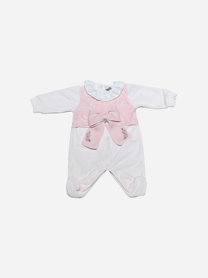 La Tutina Soraya è realizzata in ciniglia di alta qualità, ideale per garantire morbidezza e calore alla pelle delicata della neonata. Il colletto a petalo in cotone presenta un raffinato orlo a smerlo che dona un tocco elegante al capo. Il corpetto, lavorato a maglia, è arricchito da un’applicazione di fiocco che completa il design con un dettaglio sofisticato. Un prodotto firmato MARLU', perfetto per unire comfort e stile nei primi mesi di vita.