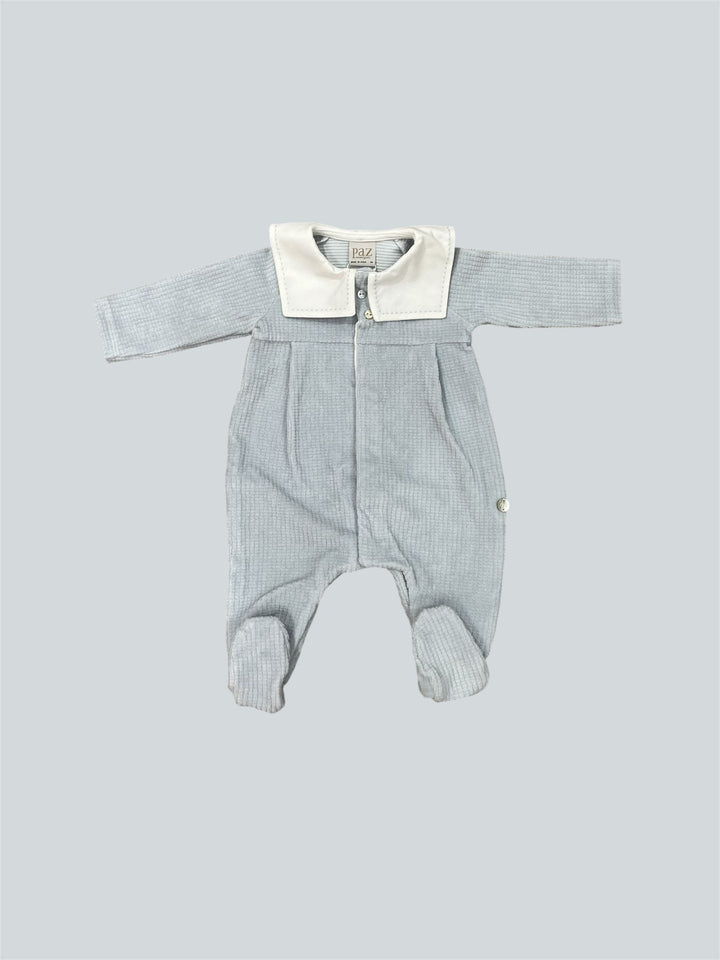 La tutina TENURA di PAZ RODRIGUEZ è un capo per neonato realizzato in Italia con materiali di alta qualità. In morbido velluto a manica lunga, presenta un colletto rifinito con cura tramite cuciture precise. Perfetta per garantire comfort e protezione delicata alla pelle del bambino, unisce eleganza e funzionalità per le prime giornate di vita.