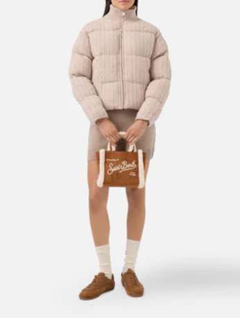 La Vanity Mini Shearling in cammello di MC2 Saint Barth combina il calore del shearling con l’eleganza del faux suede per una borsa a mano dal design contemporaneo e sofisticato. Morbida e compatta, misura 19x18x9 cm, dispone di una tracolla removibile e regolabile in pelle sintetica per versatilità nel trasporto, oltre a una pratica tasca interna. Il logo ricamato aggiunge un tocco distintivo, rendendola ideale per chi cerca stile e funzionalità in un accessorio raffinato.