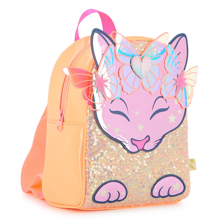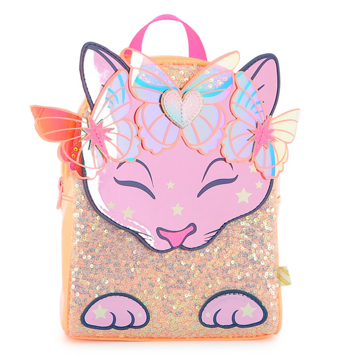 Lo zaino KITTY unisce design sofisticato e funzionalità, arricchito da paillettes e un tessuto lucido resistente. La decorazione glitterata “Cat and Butterflies” conferisce un tocco di originalità e vivacità, mentre le cinghie regolabili garantiscono una vestibilità personalizzata e confortevole. Completo di chiusura con cerniera, è ideale per chi cerca stile e praticità in un unico accessorio.